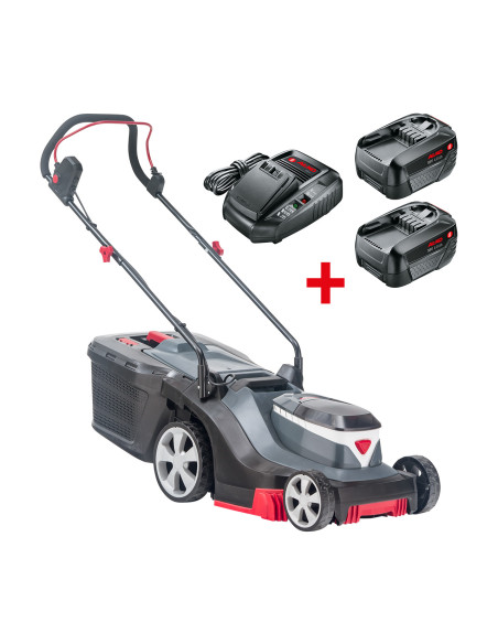 W zestawie: 2 x akumulator Li-lon 18 V (4,0 Ah) / ładowarka 3,0 A / kosiarka 38.2 Li Easy