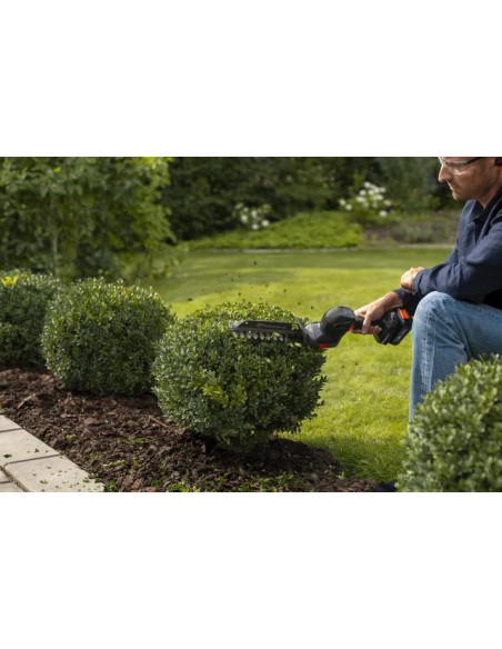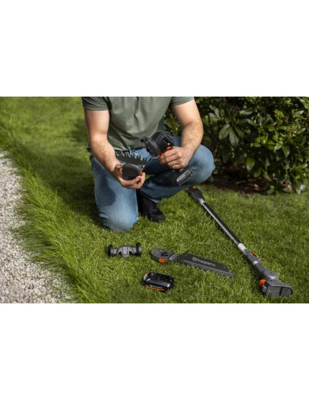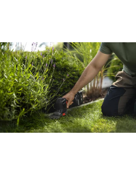 Nożyce do cięcia krzewów Aspire™ to zasilane akumulatorowo narzędzie wielofunkcyjne do precyzyjnych zadań ogrodowych, takich jak przycinanie brzegów trawy oraz kształtowanie krzewów i żywopłotów. Skorzystaj z mocnego silnika i dużej prędkości cięcia, które umożliwiają dokładne cięcie i usuwanie trawy oraz łatwą wymianę osprzętu bez użycia narzędzi. Akumulator jest kompatybilny z systemem 18V POWER FOR ALL ALLIANCE, co zapewnia optymalną elastyczność, ponieważ jeden akumulator może być używany do kilku narzędzi i marek.<br /><br />Obsługę ułatwia niewielka waga i zwarta konstrukcja, która zapewnia doskonałą zwrotność. Dzięki inteligentnemu cyfrowemu interfejsowi użytkownika możesz włączać i wyłączać silnik jednym naciśnięciem przycisku, a także łatwo sprawdzić stan akumulatora, aby odpowiednio zaplanować pracę. Produkt automatycznie się wyłącza, jeśli nie jest używany przez 180 sekund, co zmniejsza ryzyko obrażeń i wydłuża żywotność baterii.<br /><br />Aby zminimalizować potrzebną przestrzeń do przechowywania, nożyce do krzewów są kompatybilne z rozwiązaniem Aspire™ Storage i wyposażone w specjalnie zaprojektowany hak umożliwiający wygodne przechowywanie na ścianie.