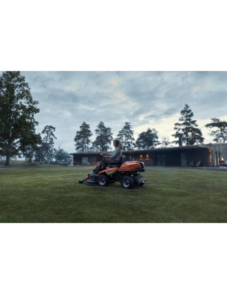 Ta kosiarka samojezdna z napędem na wszystkie koła idealnie nadaje się do pielęgnacji większych i bardziej wymagających trawników. Husqvarna Rider R 216T AWD może być wyposażona w urządzenie tnące o szerokości 94 cm lub 103 cm z opcjonalną funkcją mulczowania BioClip® lub z tylnym wyrzutem. Napęd na wszystkie koła zapewnia przyczepność na śliskiej, pochyłej nawierzchni, a przegubowy układ kierowniczy umożliwia wykonywanie ciasnych zakrętów. Komfort użytkowania zwiększają regulowana kierownica, łatwo dostępne elementy sterujące, przekładnia hydrostatyczna sterowana pedałem i diody LED.