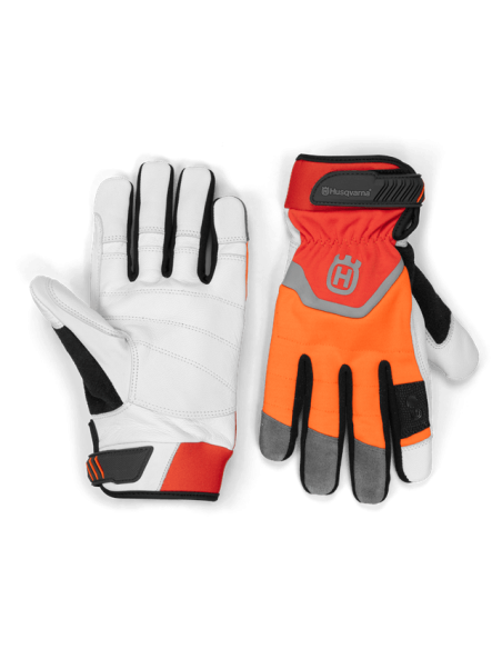 Wygodne rękawice ochronne przeznaczone do pracy pilarką łańcuchową. Spód wykonany z wytrzymałej, naturalnie wodoodpornej skóry koziej z podwójną powłoką. Podwójne szwy na kciuku dopasowują się do kształtu dłoni. Wierzch wykonany z laminowanej tkaniny spandex dla maksymalnego komfortu. Na palcu wskazującym znajduje się wstawka dostosowana do obsługi ekranu dotykowego, dzięki czemu możesz używać smartfona w rękawiczkach. Zapięcie na rzep zapewnia ciasne dopasowanie i dużą swobodę ruchów. Spełniają EN ISO 11393-4:2019 klasa 1 (20 m/s) i EN 388:2016. Dostepne w rozmiarach 8-10.