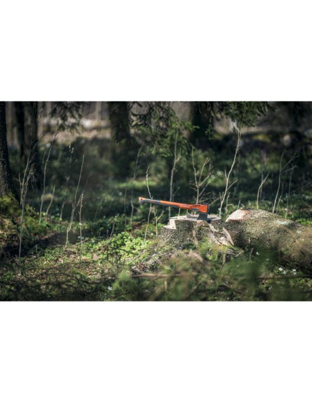 Uniwersalna siekiera przeznaczona do różnego rodzaju prac leśnych i budowlanych. Siekiera ma nieprzywierającą powłokę, która zmniejsza tarcie i ułatwia pracę w drewnie, a geometria ostrza przystosowana jest do obróbki drewna. Osłona trzonka wykonana ze stali nierdzewnej przedłuża żywotność siekiery. <br />Trzonek wzmacniany włóknem PA poprawia trwałość i wytrzymałość. Środek ciężkości umiejscowiony blisko głowicy daje idealną równowagę i rozłożenie wagi. Takie połączenie daje wysoki poziom użyteczności i siły łupania.<br />Funkcja młotka dla łatwego i skutecznego używania klinów (nie dotyczy klinów stalowych).